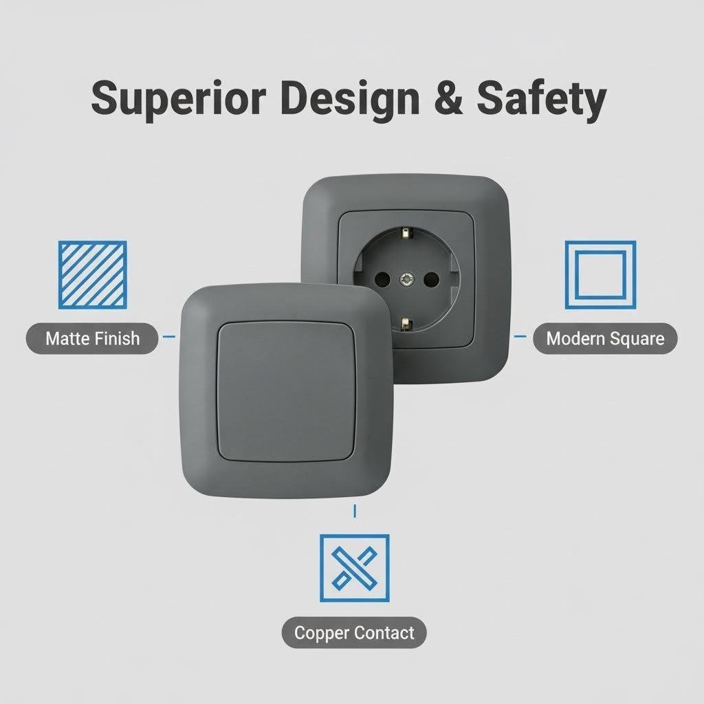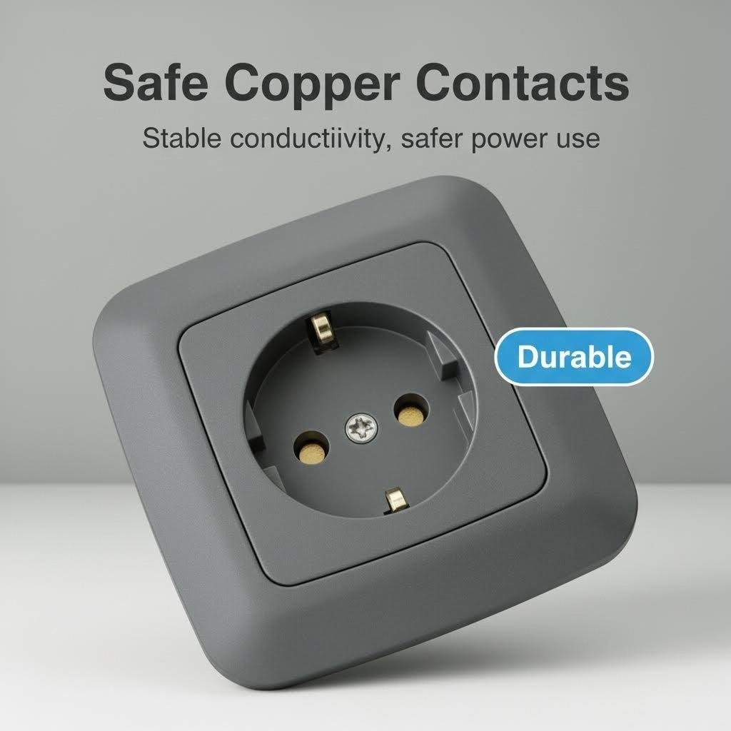 Crafted from high-grade, anti-yellowing PC material with a scratch-resistant grey coating. Fully compliant with EU (CEE 7/7) standards for safety and durability. Available in modular configurations including Schuko, USB charging ports, and multi-gang options. CE & RoHS certified. OEM/ODM services available.